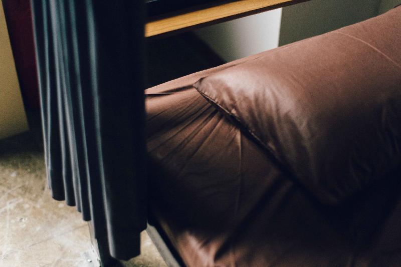 This bed in dormitory features a sofa, air conditioning and washing machine.